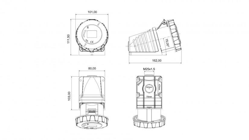 90° Eğik Duvar Priz / BC1-3303-7535