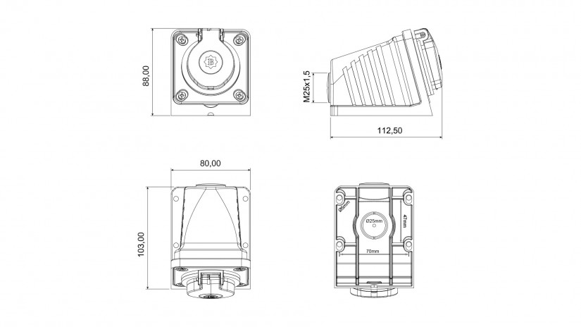 90° Eğik Duvar Priz / BP1-1402-2535