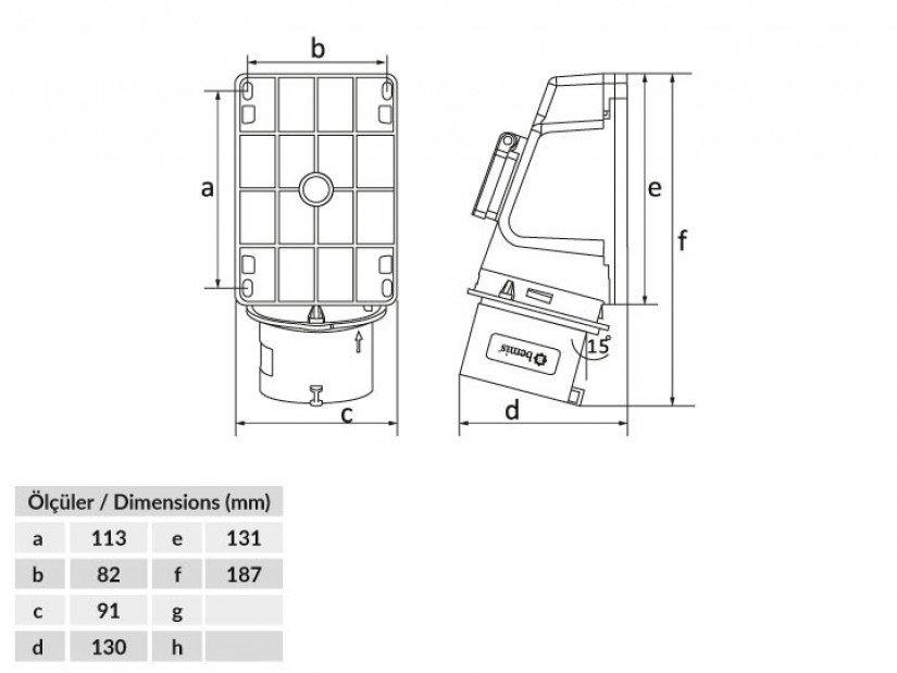 90° Eğik Pano Prizli Duvar Fiş / BC1-3303-2238