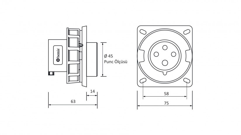 45° Eğik Makine Priz